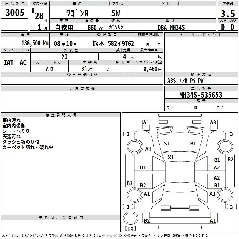 Suzuki WAGON R с аукциона Японии TAA Kyushu лот № 3005