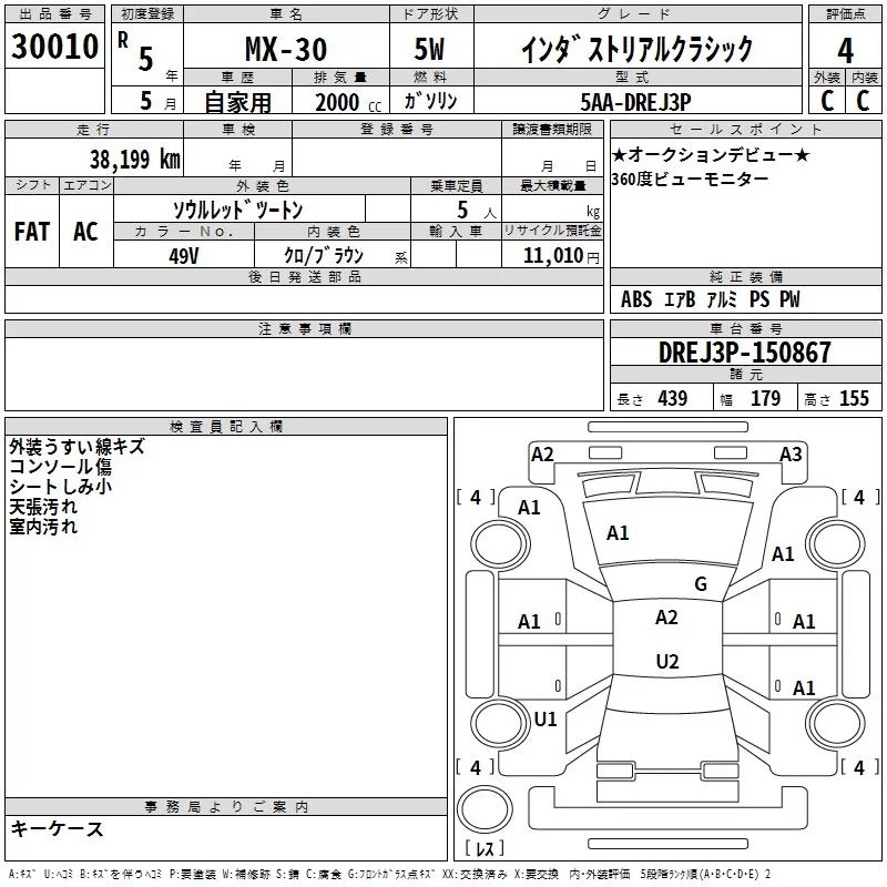 Mazda MX-30 с аукциона Японии TAA Kyushu лот № 30010