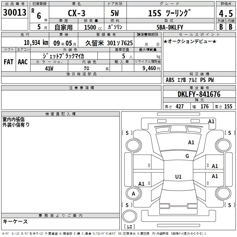 Mazda CX-3 с аукциона Японии TAA Kyushu лот № 30013