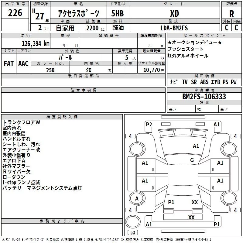Mazda AXELA с аукциона Японии TAA Kyushu лот № 226