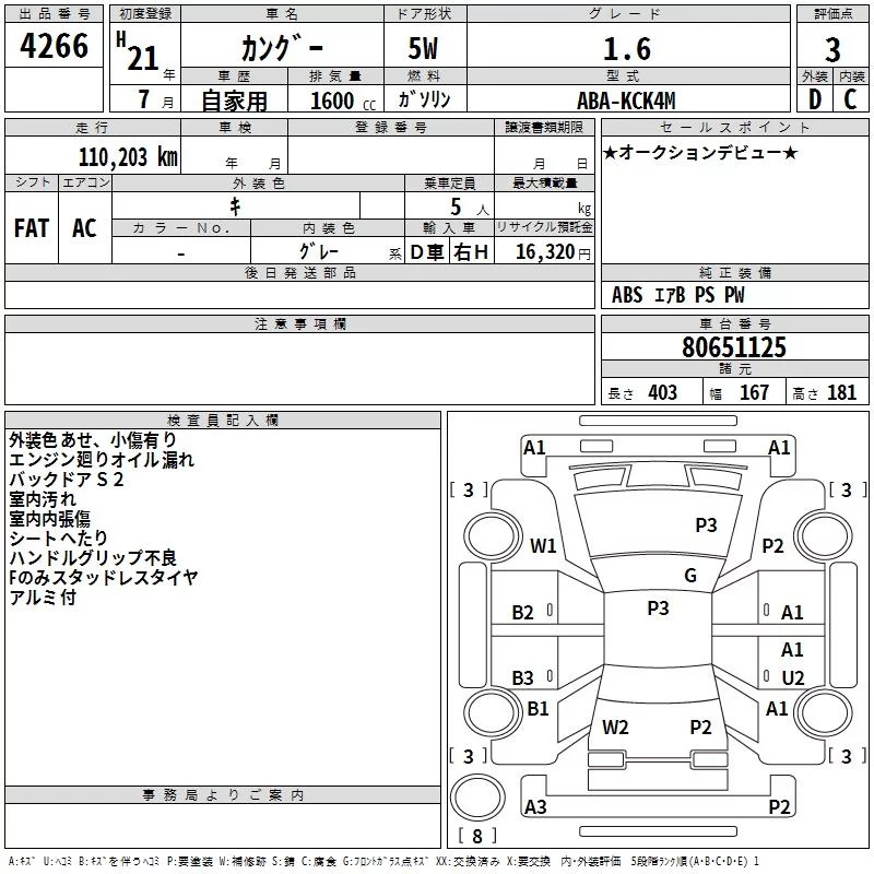 Renault KANGOO с аукциона Японии TAA Kyushu лот № 4266