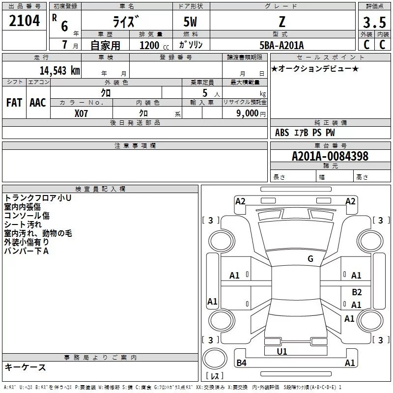 Toyota RAIZE с аукциона Японии TAA Kyushu лот № 2104