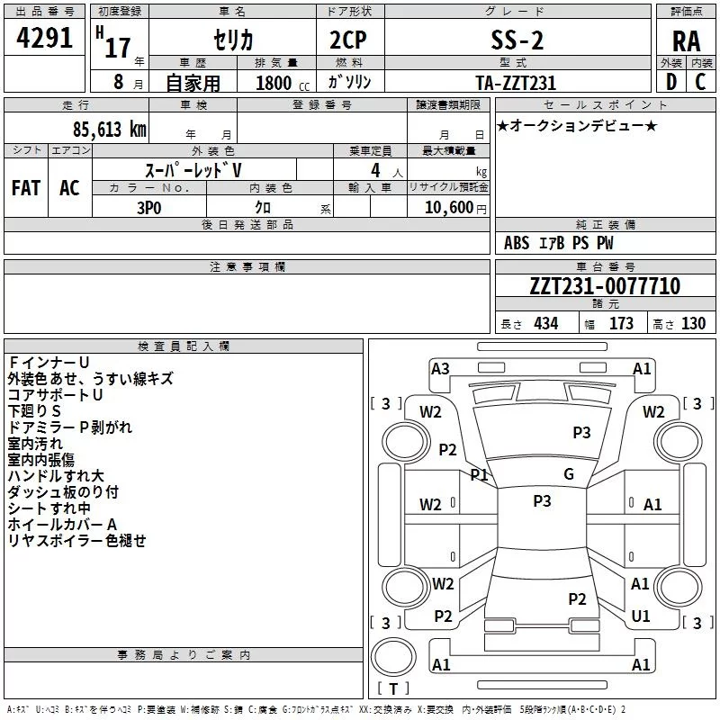 Toyota CELICA с аукциона Японии TAA Kyushu лот № 4291