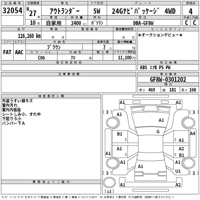 Mitsubishi OUTLANDER с аукциона Японии TAA Kyushu лот № 32054