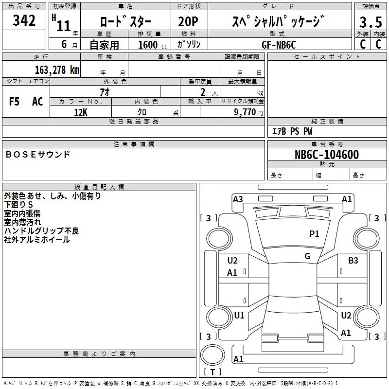 Mazda ROADSTER с аукциона Японии TAA Kyushu лот № 342