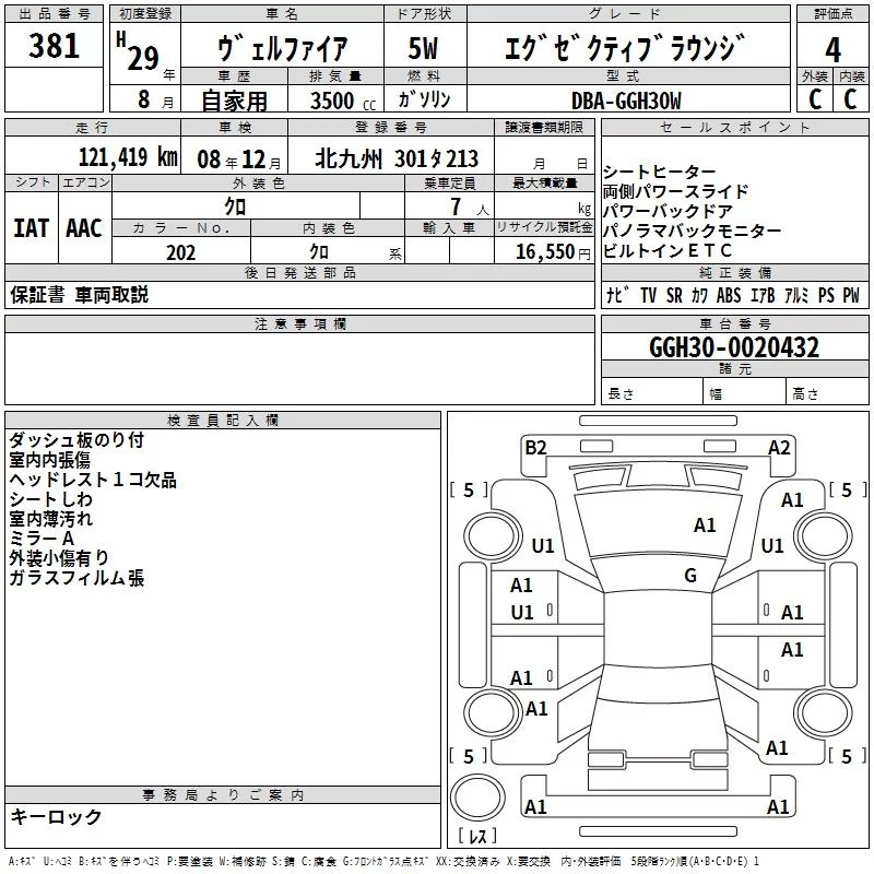 Toyota VELLFIRE с аукциона Японии TAA Kyushu лот № 381