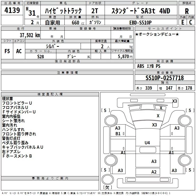 Daihatsu HIJET TRUCK с аукциона Японии TAA Minami Kyushu лот № 4139