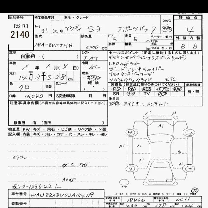 Audi S3 с аукциона Японии JU Saitama лот № 2140