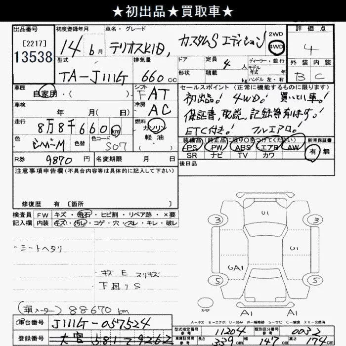 Daihatsu TERIOS KID с аукциона Японии JU Saitama лот № 13538