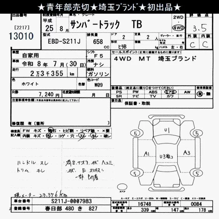 Subaru SAMBAR с аукциона Японии JU Saitama лот № 13010