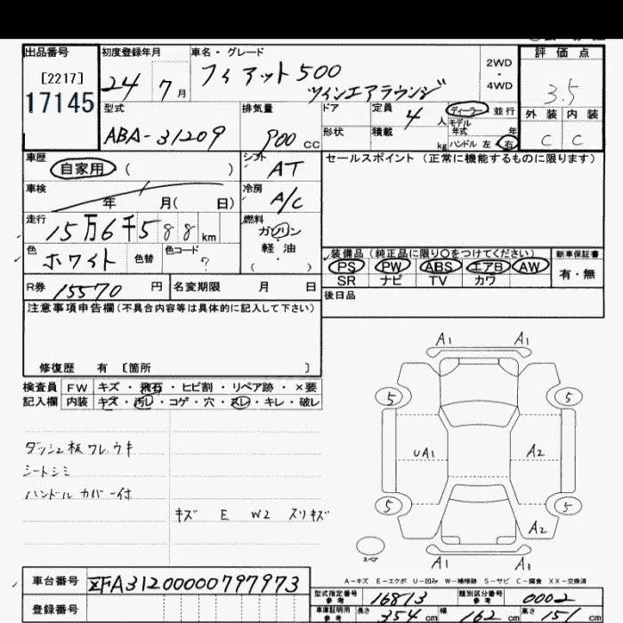 Fiat 500 с аукциона Японии JU Saitama лот № 17145