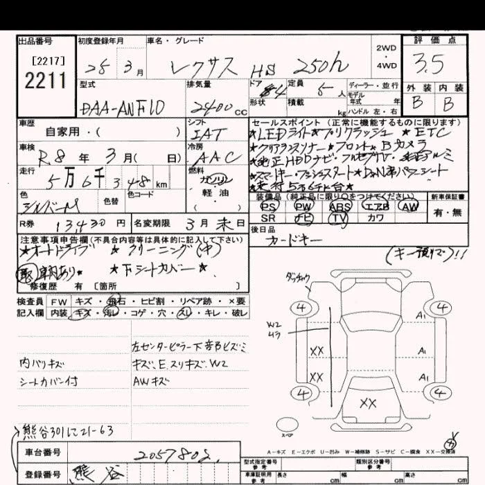 Lexus HS с аукциона Японии JU Saitama лот № 2211