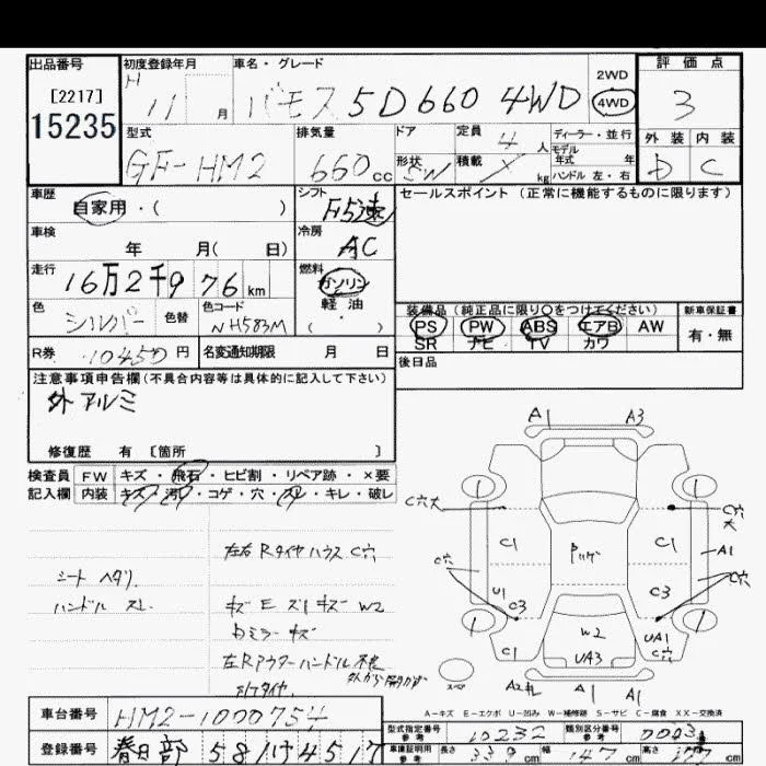 Honda VAMOS с аукциона Японии JU Saitama лот № 15235