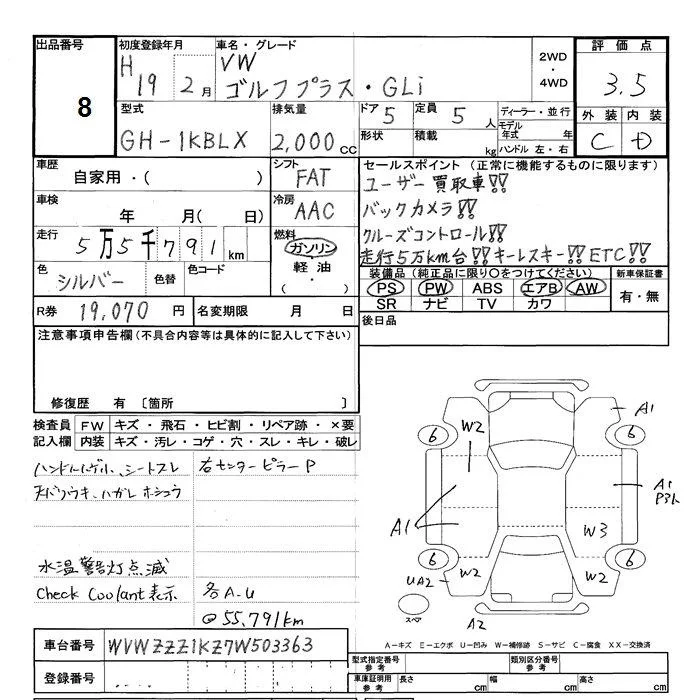 Volkswagen GOLF PLUS с аукциона Японии JU Shizuoka лот № 8
