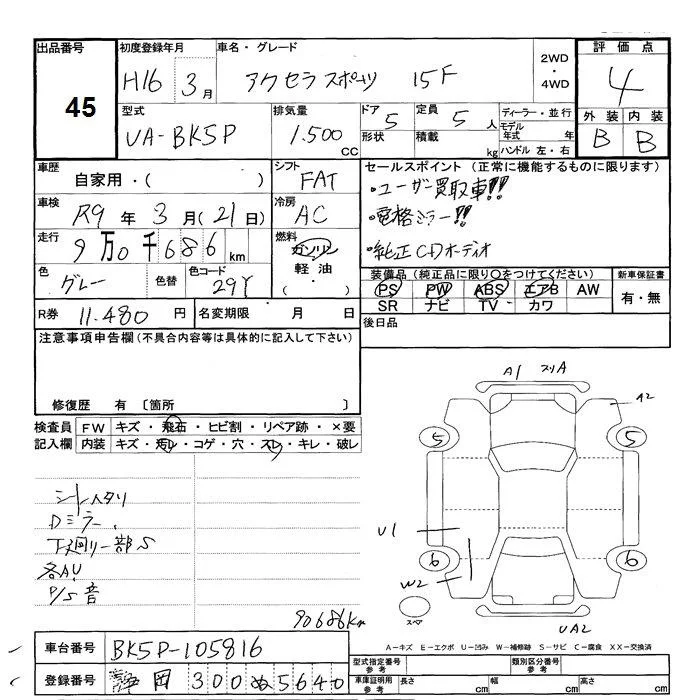 Mazda AXELA с аукциона Японии JU Shizuoka лот № 45