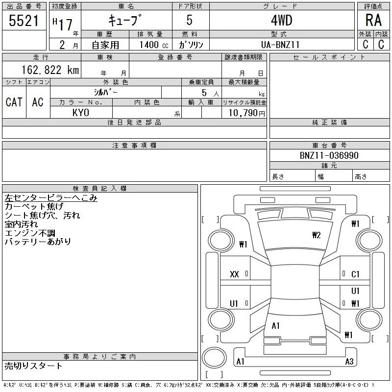 Nissan CUBE с аукциона Японии CAA Tohoku лот № 5521