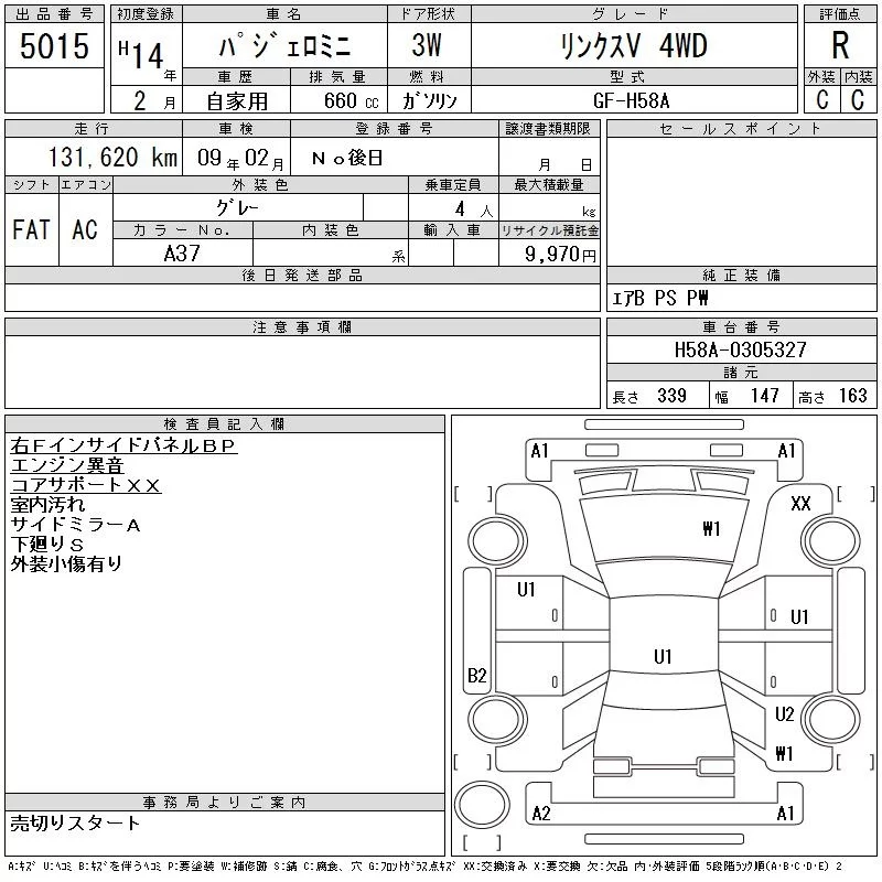 Mitsubishi PAJERO MINI с аукциона Японии CAA Tohoku лот № 5015