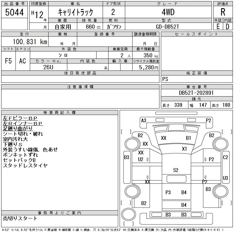 Suzuki CARRY TRUCK с аукциона Японии CAA Tohoku лот № 5044