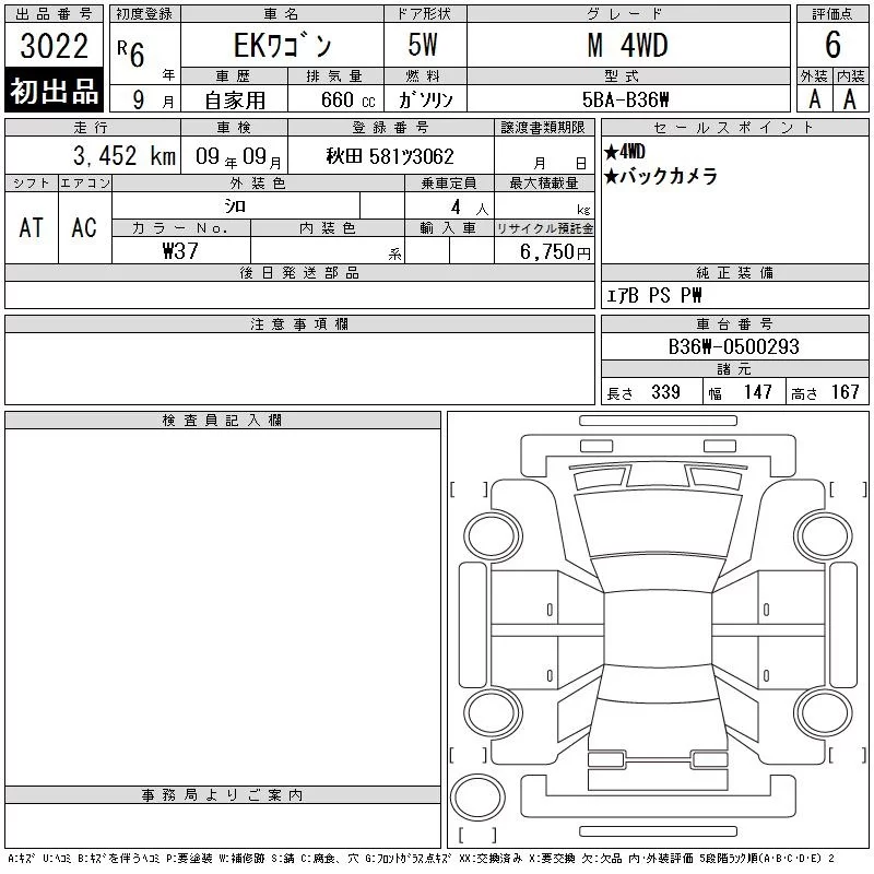 Mitsubishi EK WAGON с аукциона Японии CAA Tohoku лот № 3022