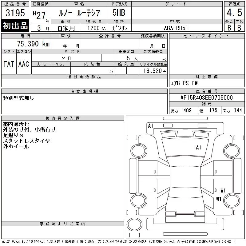 Renault LUTECIA с аукциона Японии CAA Tohoku лот № 3195