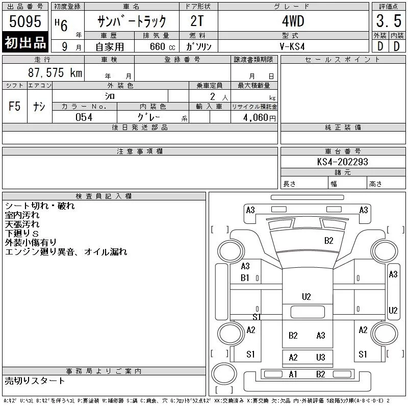 Subaru SAMBAR с аукциона Японии CAA Tohoku лот № 5095