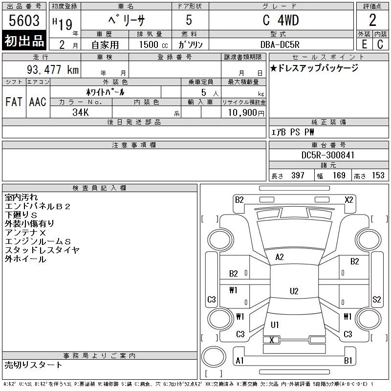 Mazda VERISA с аукциона Японии CAA Tohoku лот № 5603