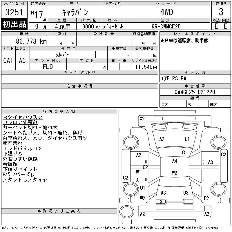 Nissan CARAVAN VAN с аукциона Японии CAA Tohoku лот № 3251