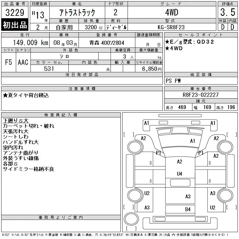 Nissan ATLAS с аукциона Японии CAA Tohoku лот № 3229