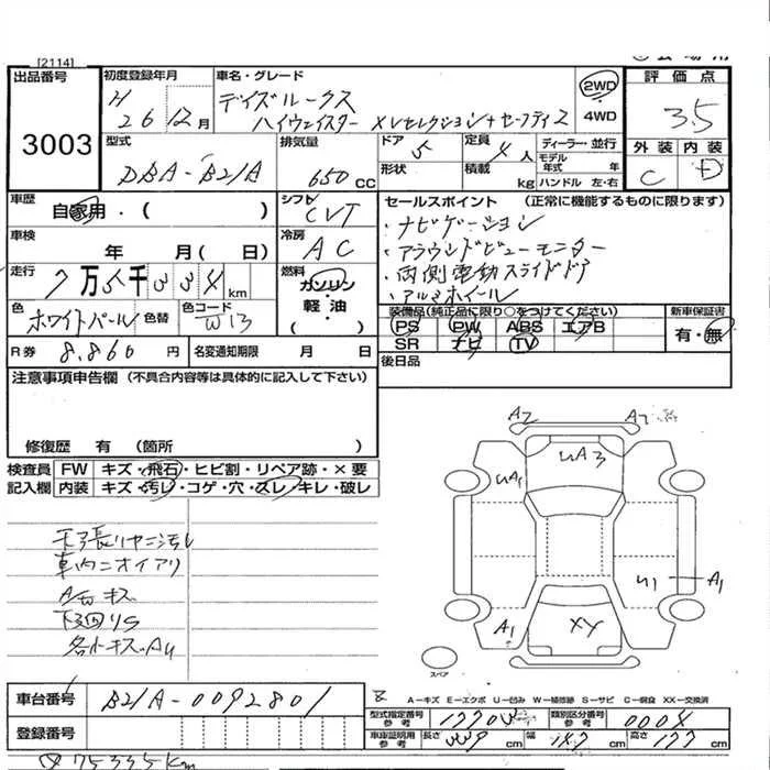 Nissan DAYZ ROOX с аукциона Японии JU Nagano лот № 3003