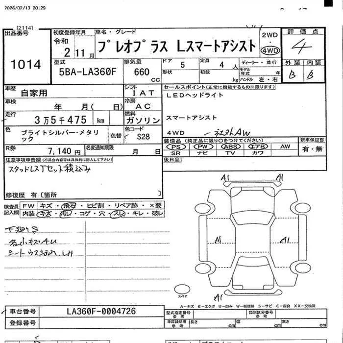 Subaru PLEO PLUS с аукциона Японии JU Nagano лот № 1014