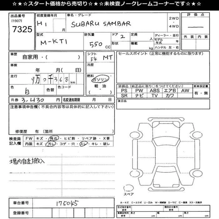 Subaru SAMBAR с аукциона Японии JU Mie лот № 7325