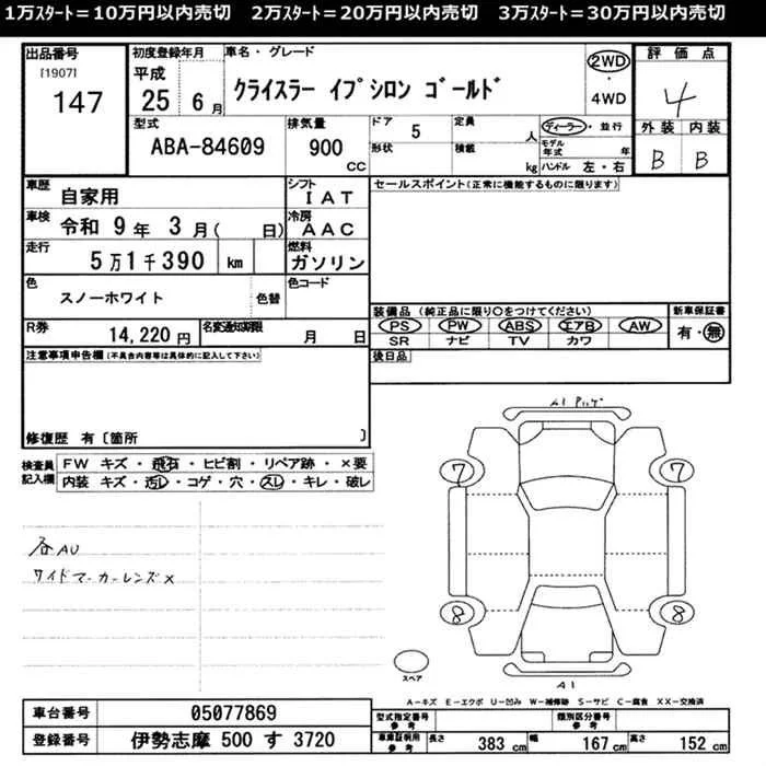 Chrysler Ypsilon с аукциона Японии JU Mie лот № 147
