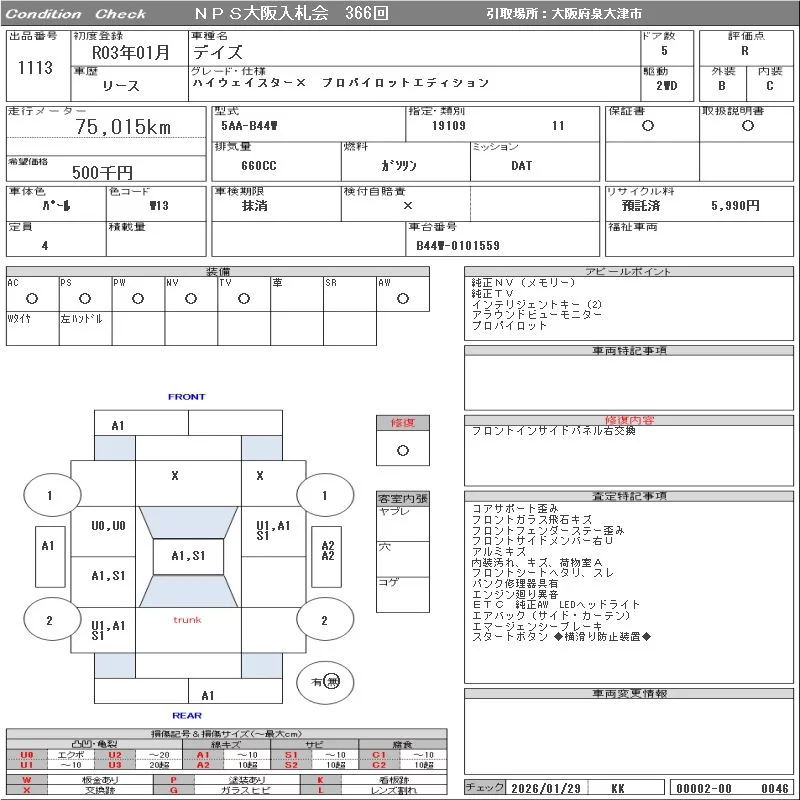 Nissan DAYZ с аукциона Японии NPS Osaka Nyusatsu лот № 1113