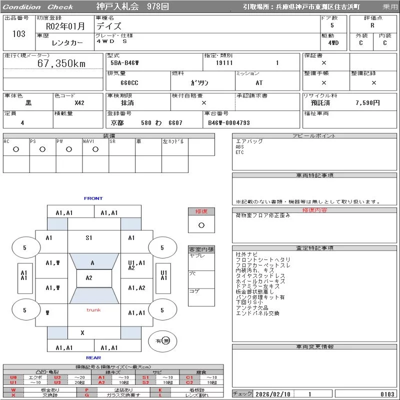 Nissan DAYZ с аукциона Японии ORIX Kobe Nyusatsu лот № 103