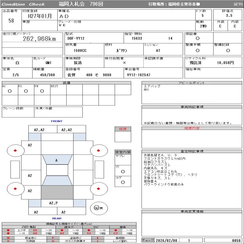Nissan AD с аукциона Японии ORIX Fukuoka Nyusatsu лот № 58