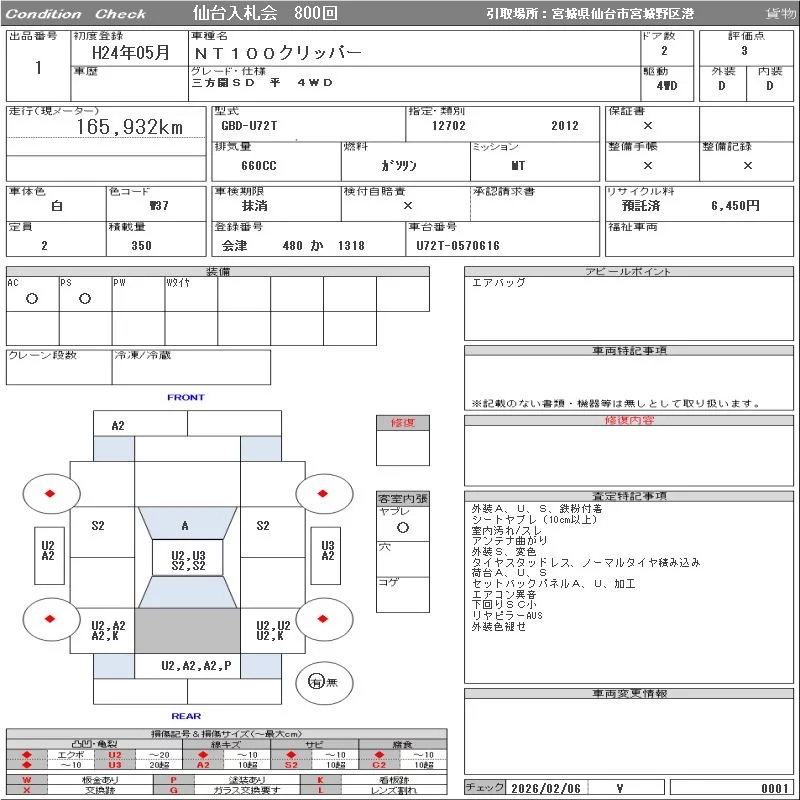 Nissan CLIPPER TRUCK с аукциона Японии ORIX Sendai Nyusatsu лот № 1
