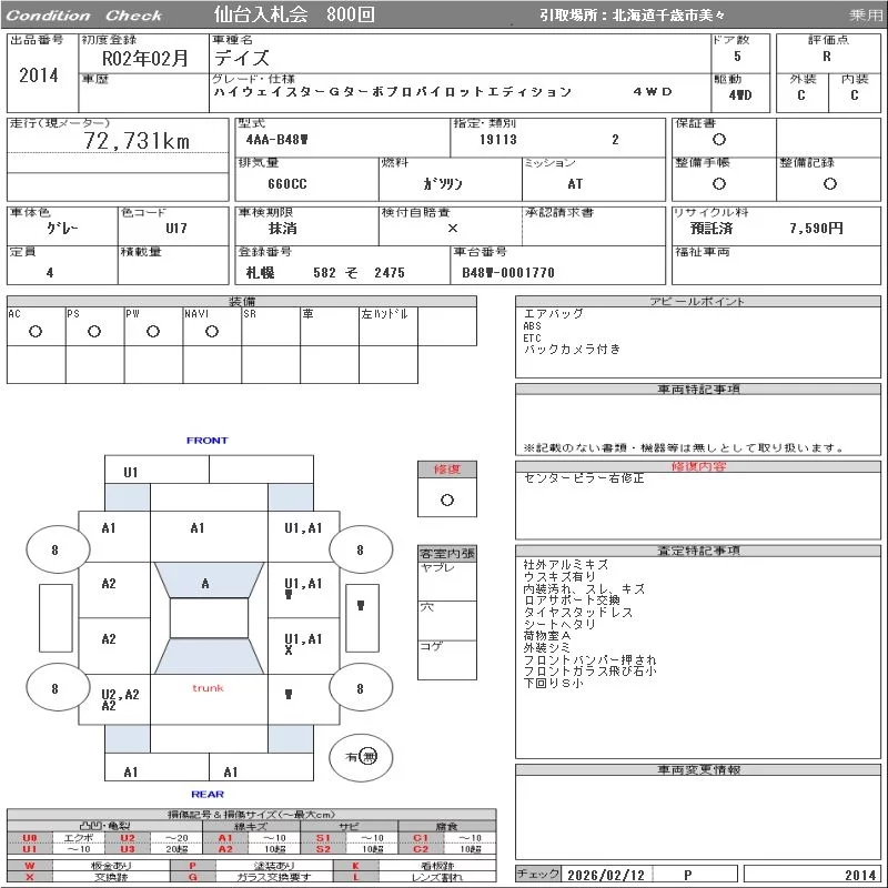 Nissan DAYZ с аукциона Японии ORIX Sendai Nyusatsu лот № 2014