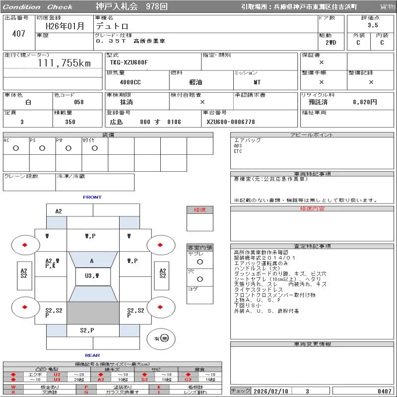 Hino DUTRO с аукциона Японии ORIX Kobe Nyusatsu лот № 407