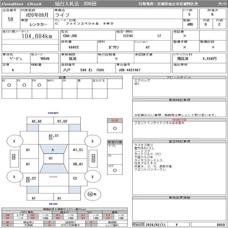 Honda LIFE с аукциона Японии ORIX Sendai Nyusatsu лот № 59
