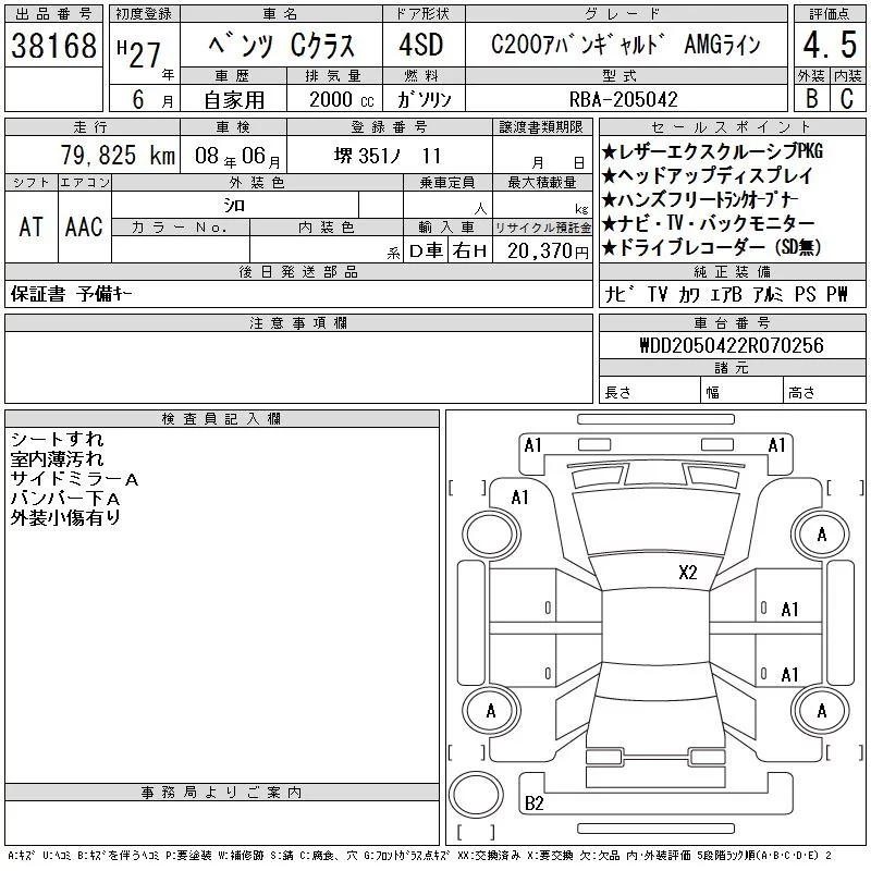 Mercedes-Benz C CLASS с аукциона Японии CAA Chubu лот № 38168