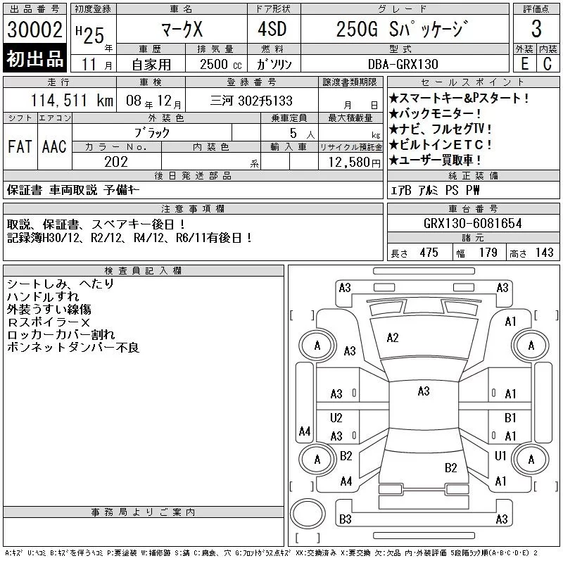 Toyota MARK X с аукциона Японии CAA Chubu лот № 30002