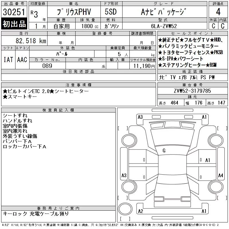 Toyota PRIUS PHV с аукциона Японии CAA Chubu лот № 30251