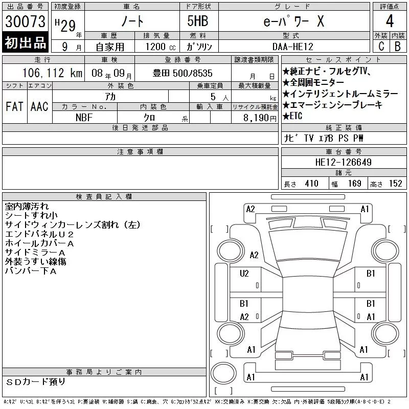 Nissan NOTE с аукциона Японии CAA Chubu лот № 30073
