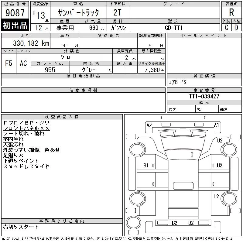 Subaru SAMBAR с аукциона Японии CAA Chubu лот № 9087