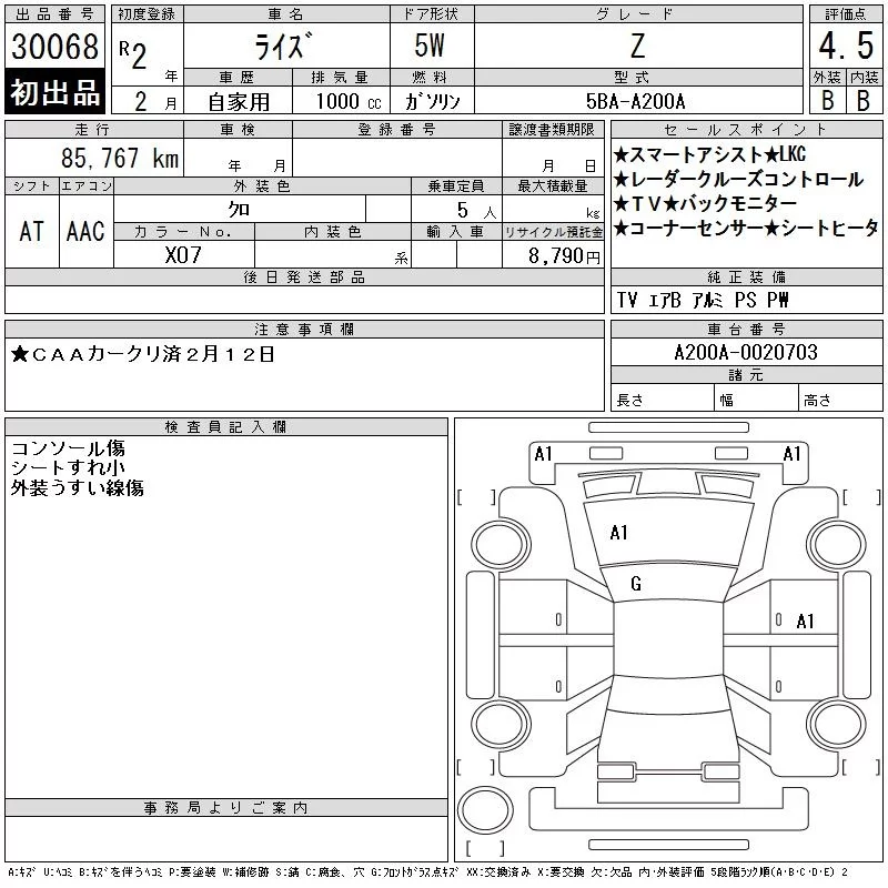 Toyota RAIZE с аукциона Японии CAA Chubu лот № 30068