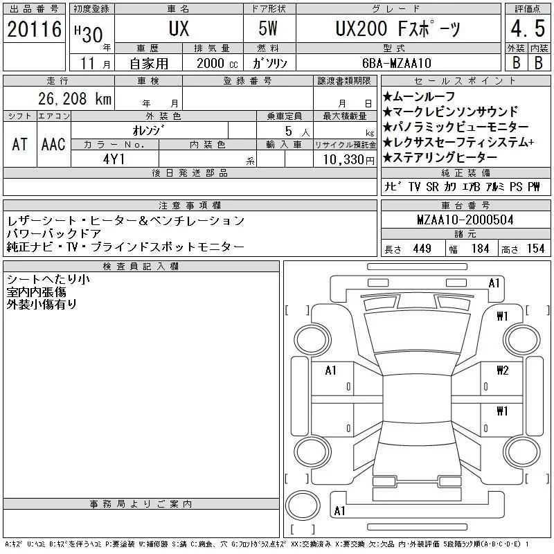 Lexus UX с аукциона Японии CAA Chubu лот № 20116