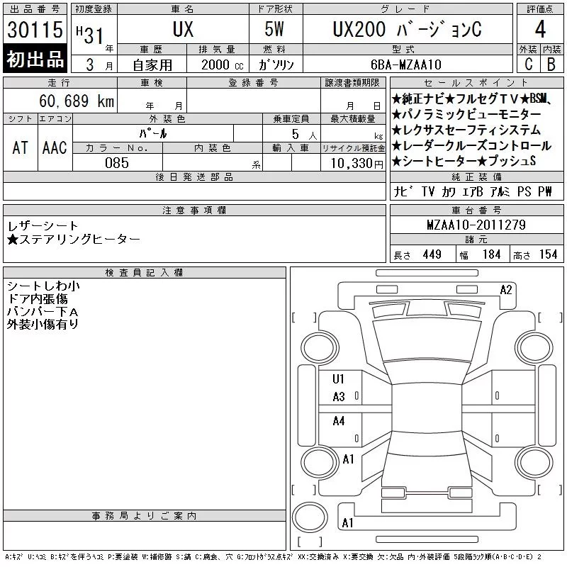 Lexus UX с аукциона Японии CAA Chubu лот № 30115