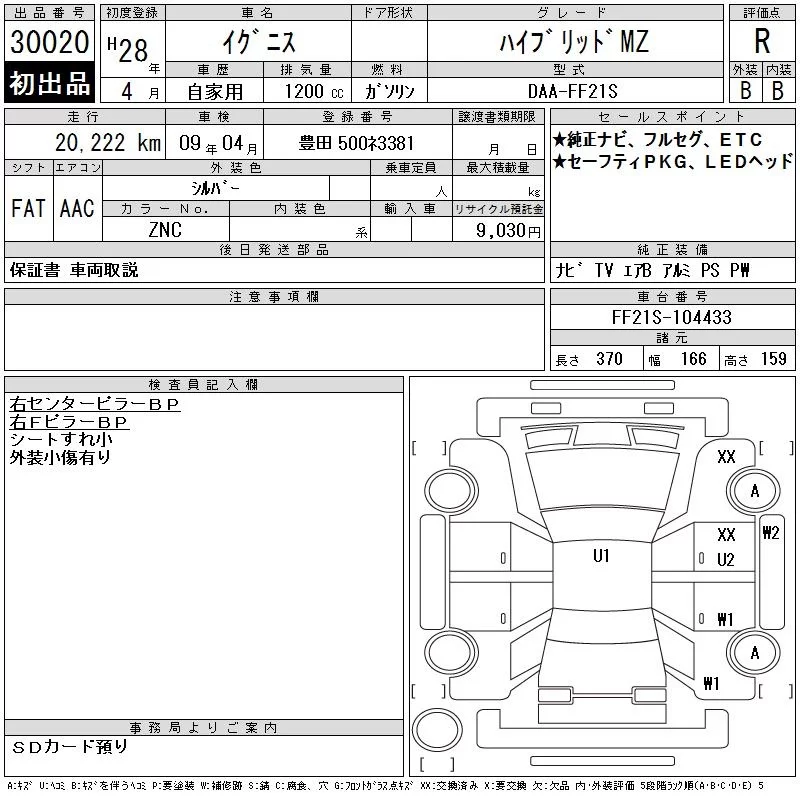 Suzuki IGNIS с аукциона Японии CAA Chubu лот № 30020