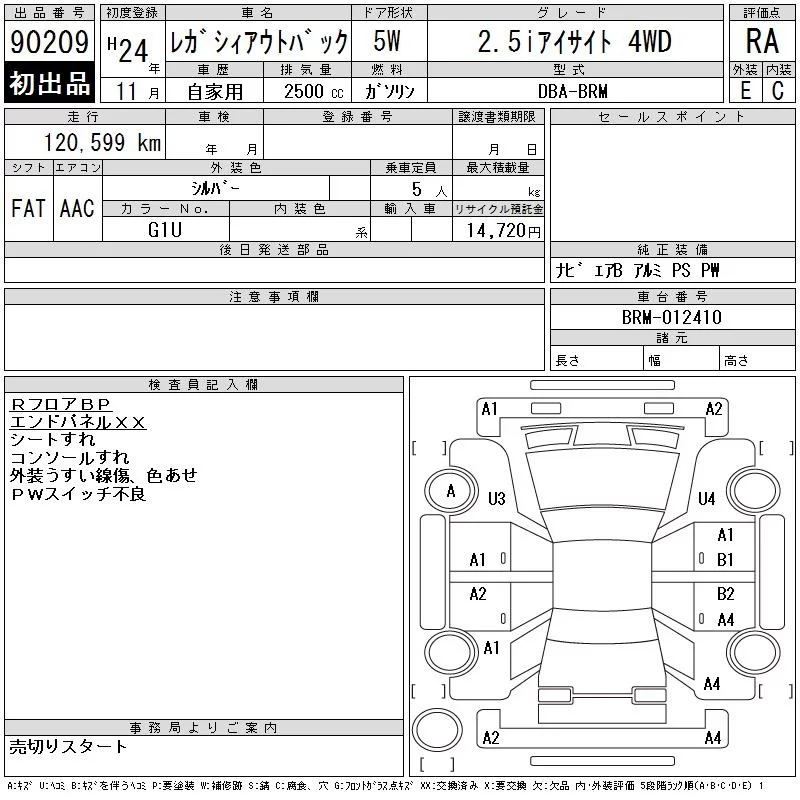 Subaru LEGACY OUTBACK с аукциона Японии CAA Chubu лот № 90209