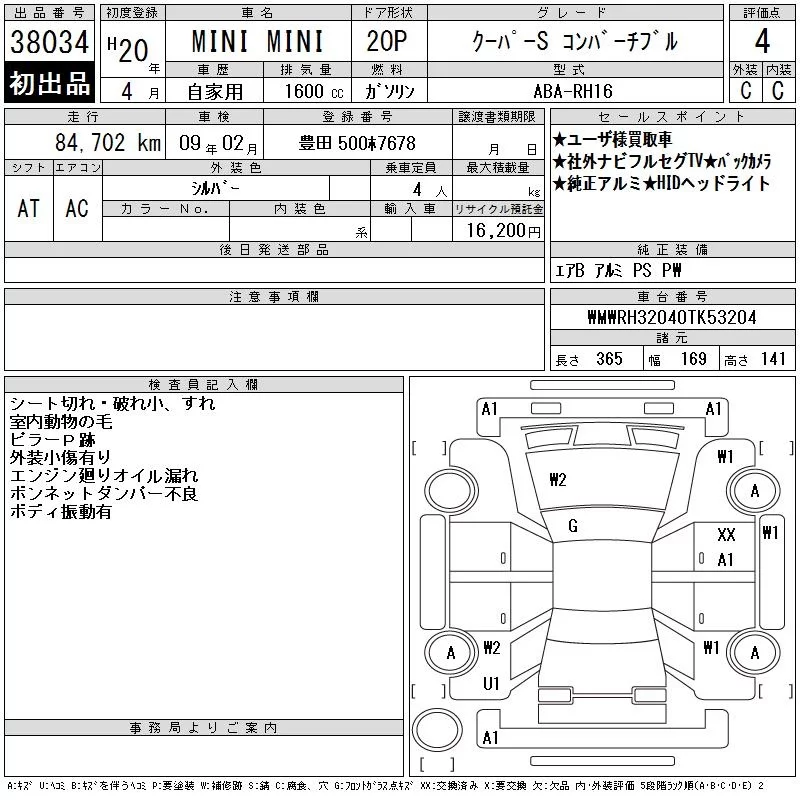 BMW MINI с аукциона Японии CAA Chubu лот № 38034